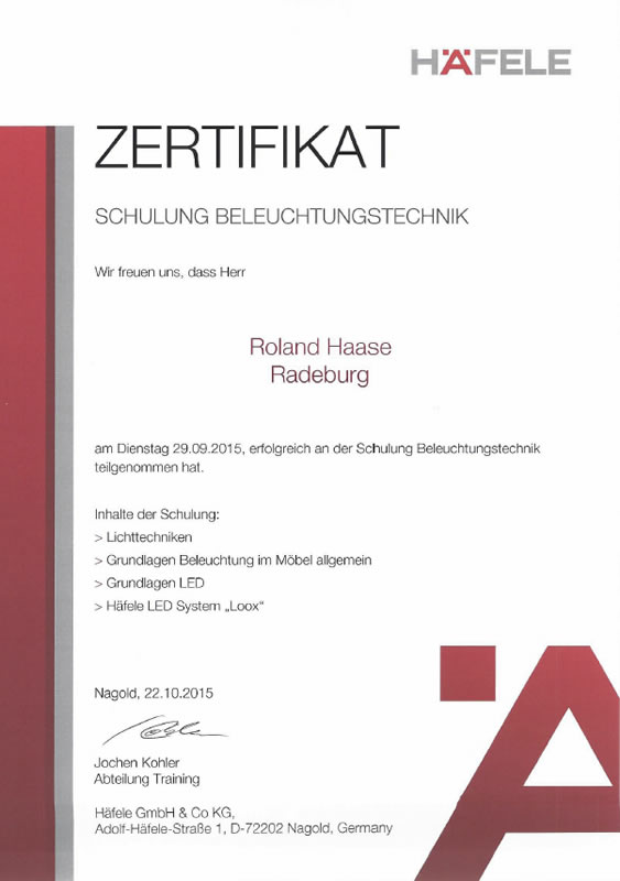 Zertifikate, Urkunden und Zulassungen der Tischlerei Haase